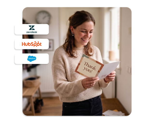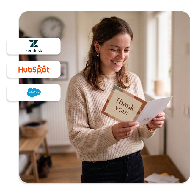 Turn every customer interaction into a 9+ experience. Send physical cards in one click, directly from your own system.